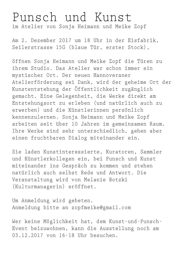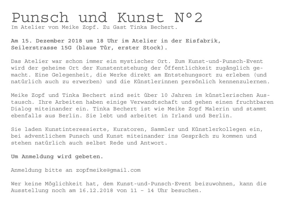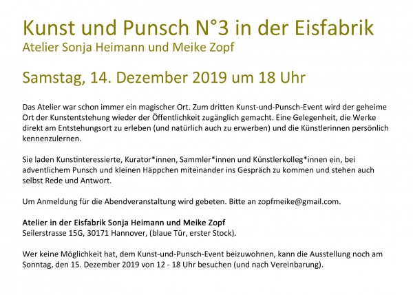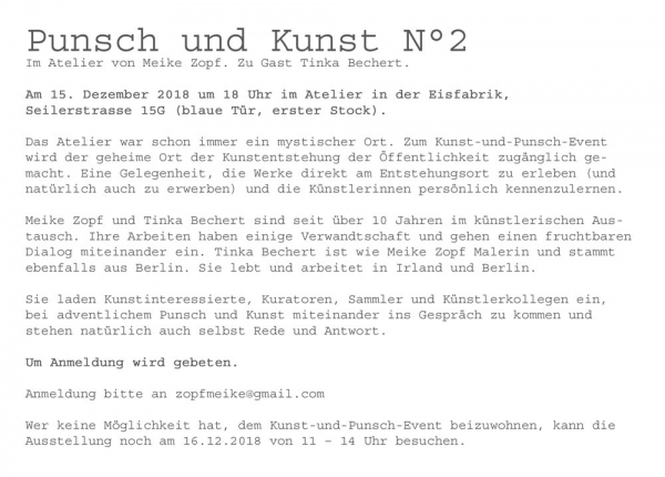 A15. Dezember 2018 um 18 Uhr im Atelier.